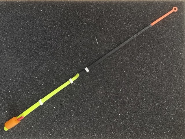 Meget god nappindikator for isfiske. Bygget opp av to deler. Begge har snørefører. Tube for festing til stikke uten toppøye. Snørefører ved tuben.