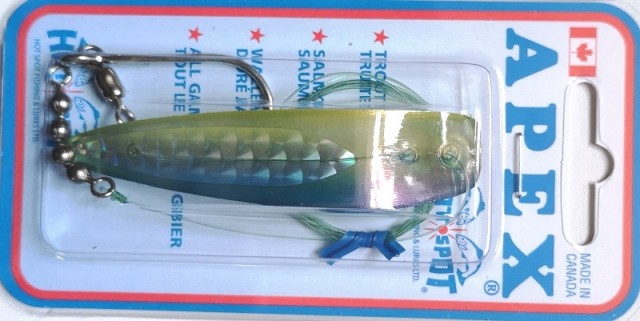 Apex fra Hot-Spot er blandt mange trollingfiskeres favoritter. Skjeens lokkende og slingrende gange har vekket mang en ørret og laks til hugg.
